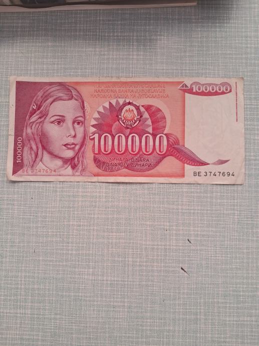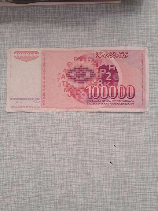 novčanica 100 000 dinara 1.V.1989 jugoslavija