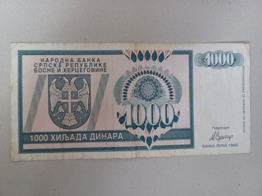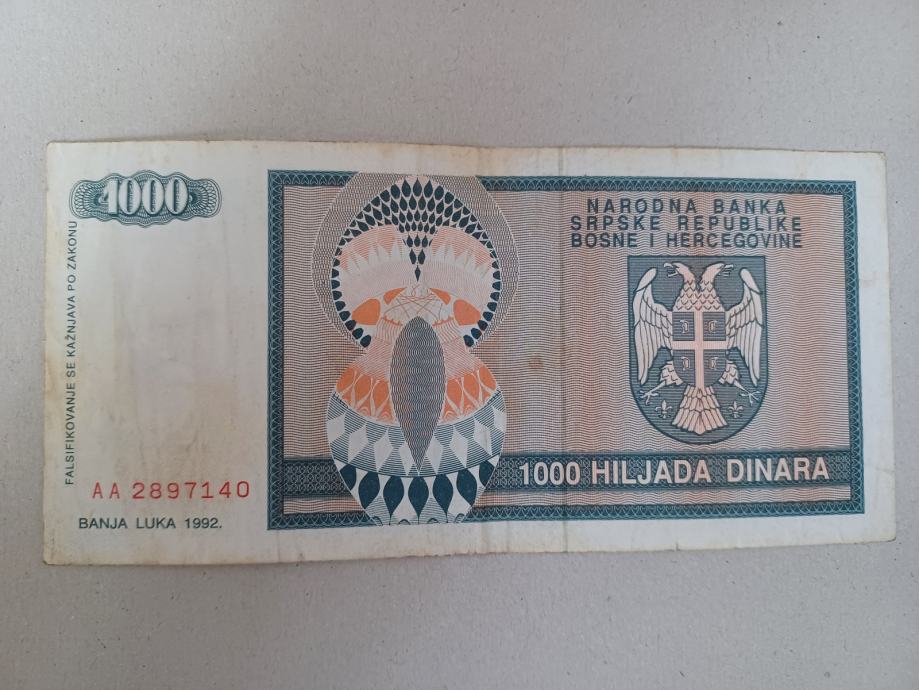 Prodajem novčanicu apoena 1000 dinara ("Srpska republika BiH", 1992. Banja Luka)