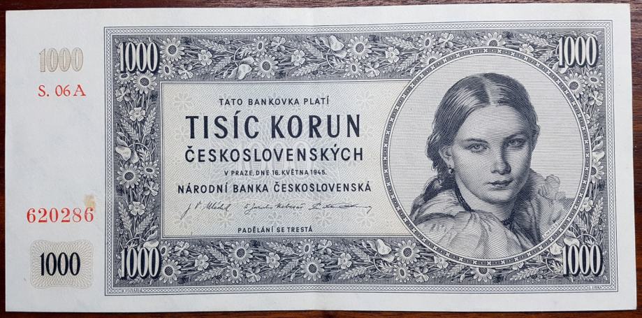 NOVČANICA, 1000 KORUN, ČESKOSLOVENSKYCH (Republika Čehoslovačka) 1945.