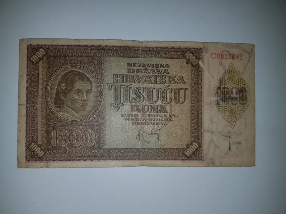 Prodajem novčanicu od 1000 kuna iz 1941.g.