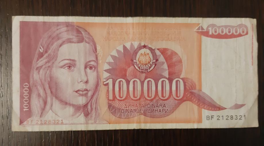 Prodajem novčanicu apoena 100.000 dinara (Jugoslavija 1989.)