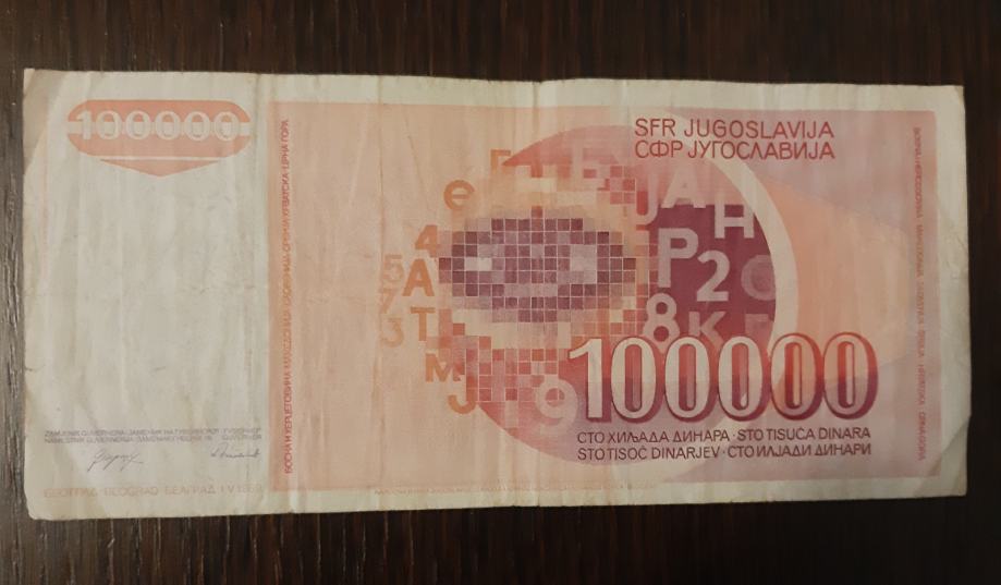 Novčanica 100000 (sto tisuća) dinara (Jugoslavija 1989.)