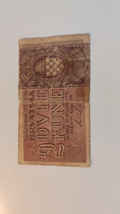 Prodajem novčanicu od 2 kune,izdanu 1942 godine.Stanje vidljivo na slikama.