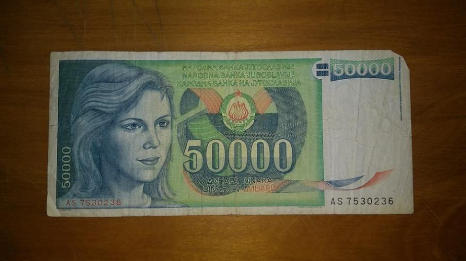 Prodajem staru novčanicu od 50 000 dinara, očuvana.