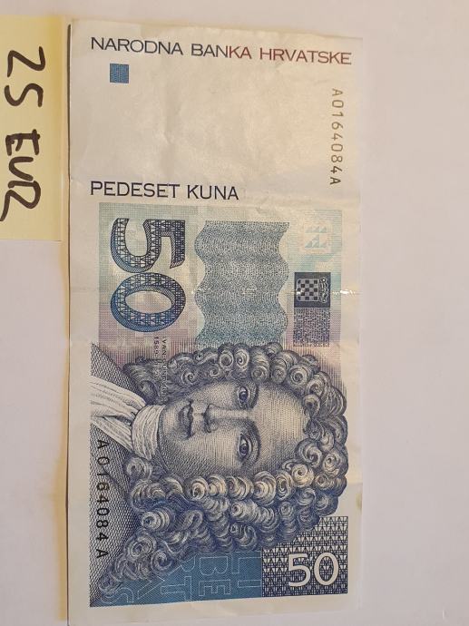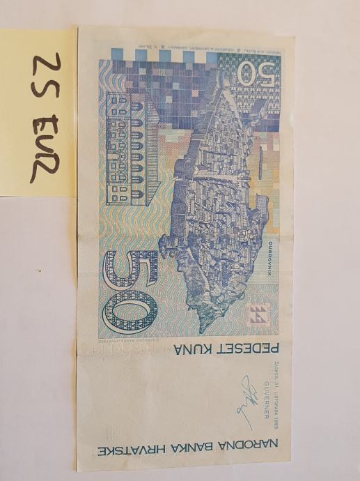 Novčanica iz 1993 godine . Cijena 25 eura. Primopredaja Zagreb