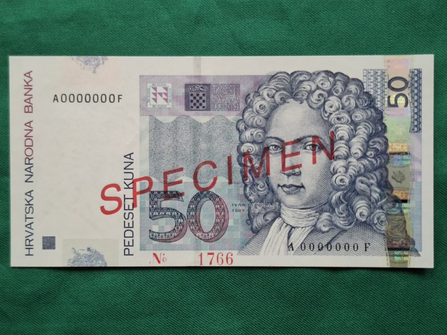 NOVČANICA. 50 Kuna-SPECIMEN. 07.03.2002 g. Serija-1766.Mob