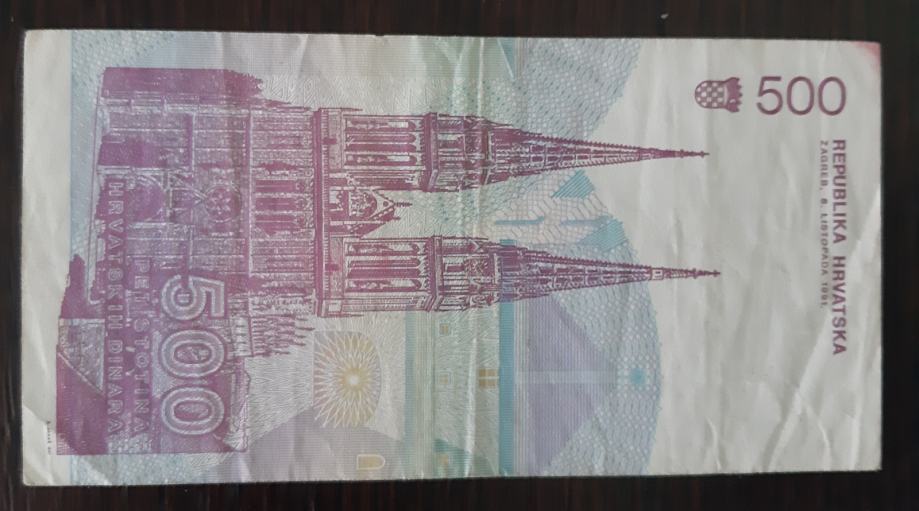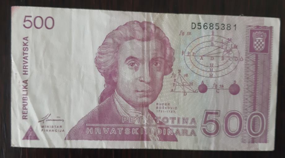 Prodajem novčanicu apoena 500 hrvatskih dinara.