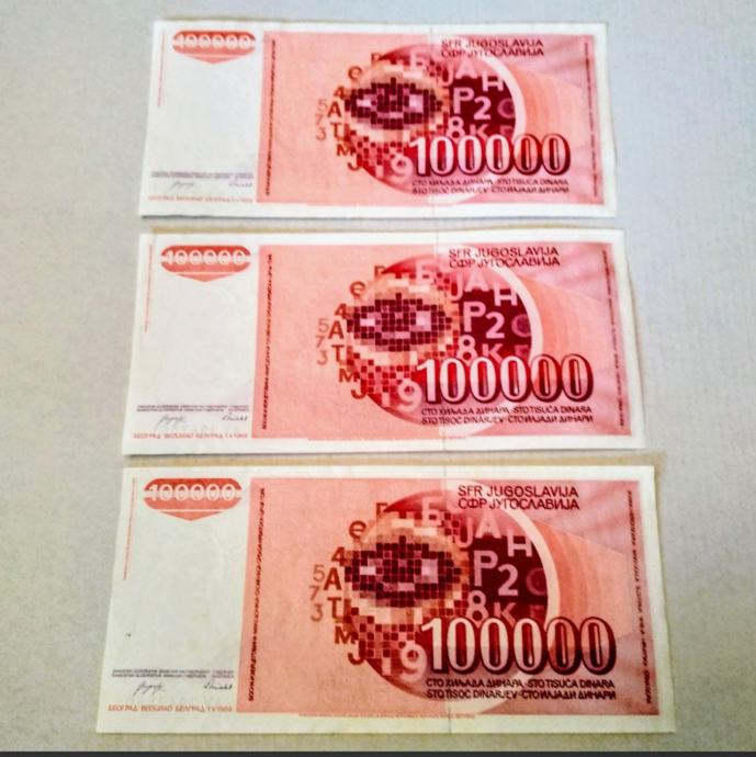 NOVČANICA - LOT 3 kom - ⚡100 000 DINARA 1989⚡ - UNC -
