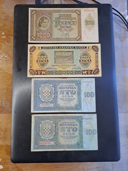 Novčanice od 1000,i 100 kune, NDH ,cijena 8 eura po komadu