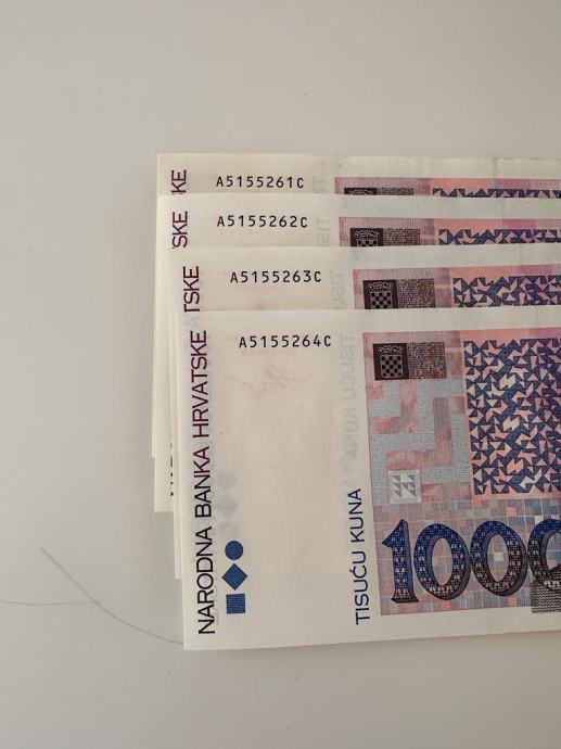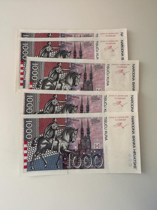 Novčanice od 1000 kn i od 500 kn u savršenom stanju - NOVE. Dio novčanica s uzastopnim brojevima.