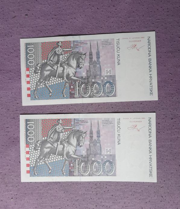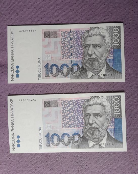 Novčanice od 1000 kn (2 kom) u savršenom stanju.