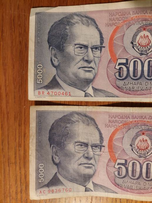 Novčanice 5000 dinara / 1892-1980 / Obje 5E
