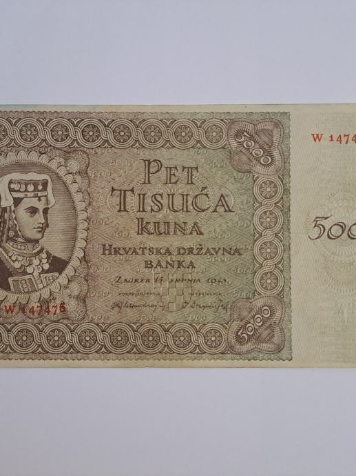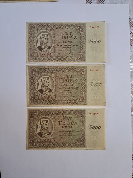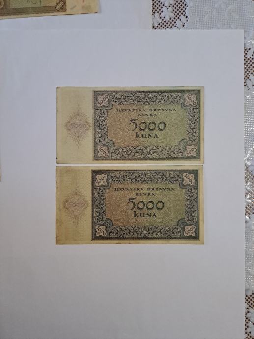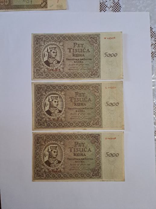 Novcanice od 5000 kuna, iz vremena NDH, cijena 12 eura po komadu
