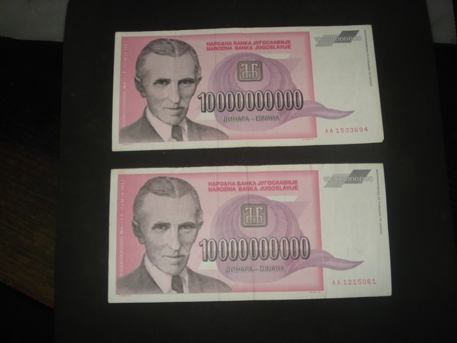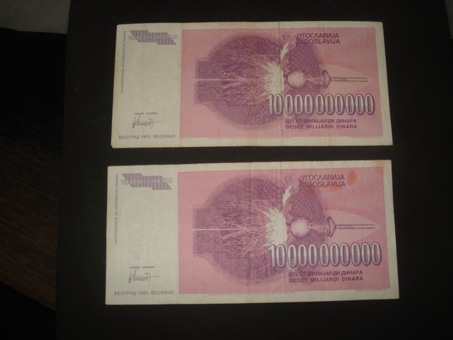 Jugoslavija 10 milijardi dinara 1993.FINE (2 kom)