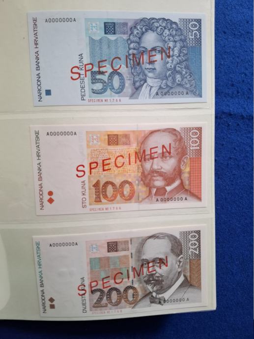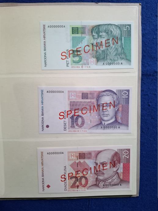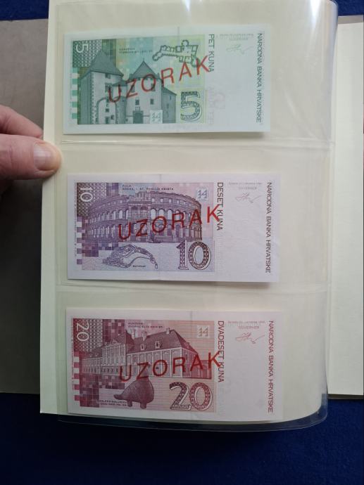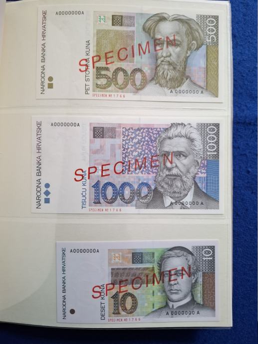 NOVČANICE u mapi. KUNE-SPECIMEN. 31.10.1993 g. A.UNC. 9 kom. Mob