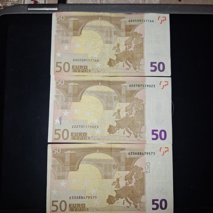 Novčanice 50€, 2002.g., 3 komada, 70€ po komadu
