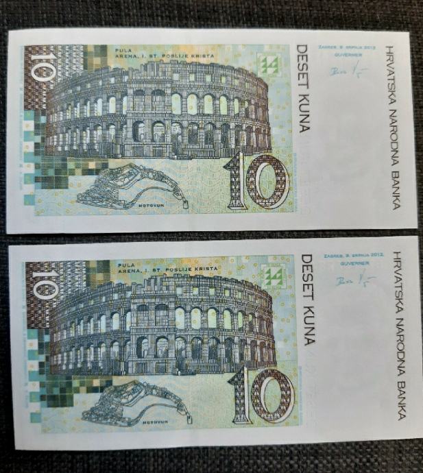 Prodaju se dvije ciste UNC novcanice od deset Kuna, deset KN iz 2012. godine. Serijski brojevi za redom.