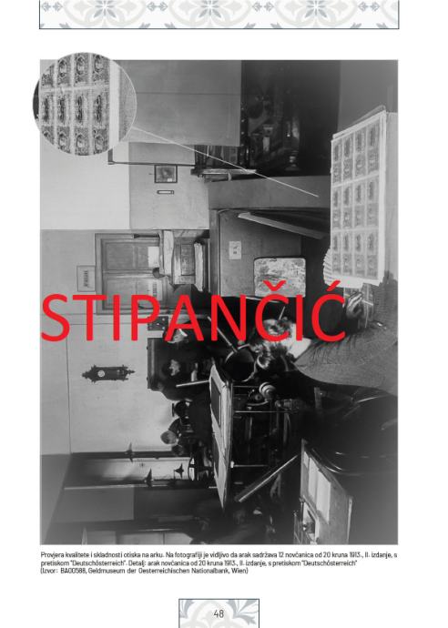 - fotografije iz unutrašnjih prostora tiskare Austro-Ugarske banke