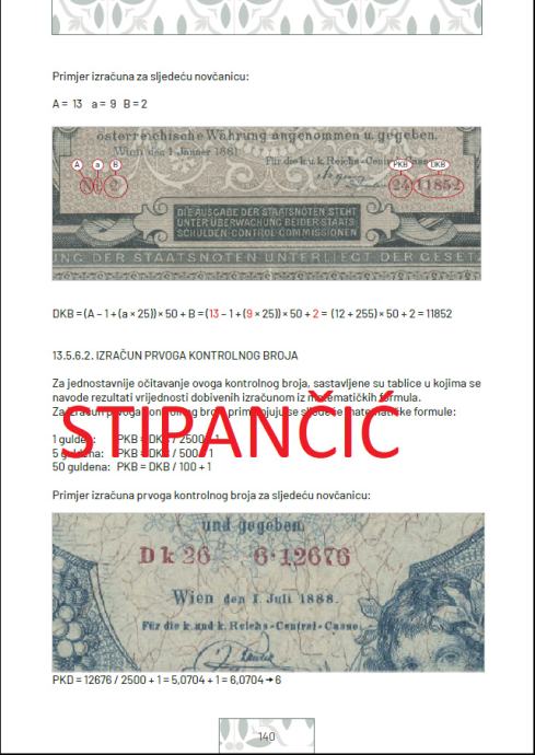 · Numeranje državnih novčanica (numeracijska zaštita po matemetičnom izračunu) Detaljno obrazloženje sistema tadašnjeg numeriranja serijskih i kontrolnih brojeva…s primjerima izračuna pomuću tabela i matematičkih formula.