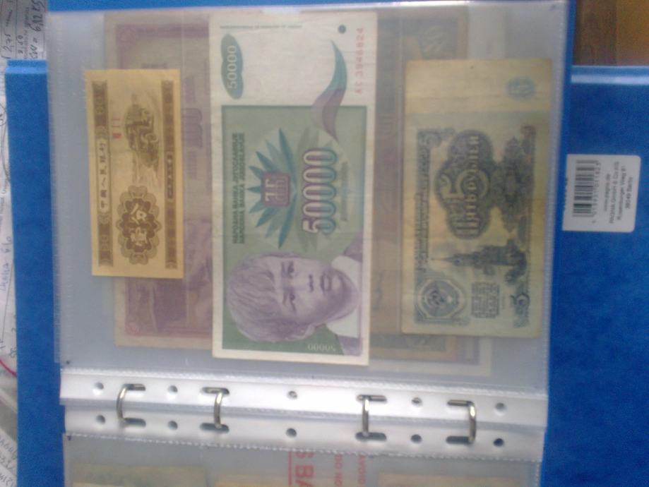 Numizmatika - album sa 20 listova, 11 listova po 3 džepa+9 listova po 2 džepa, dakle ukupno 51 novčanica raznih zemalja, "početnička zbirka".