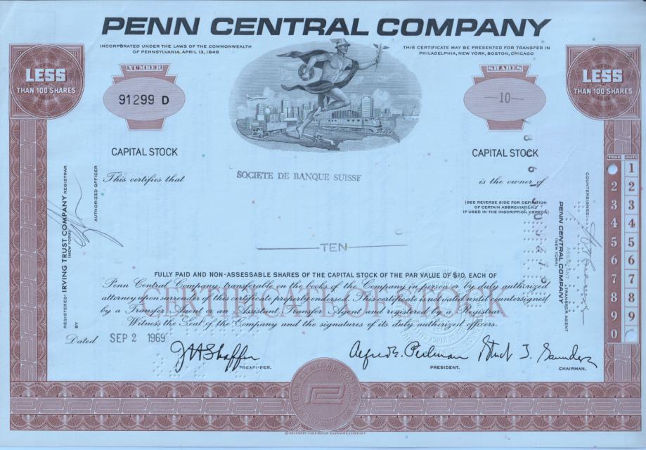Penn Central Company Certifikat dionica Željeznica Sjedinjene Države