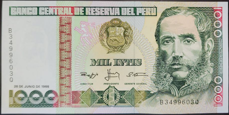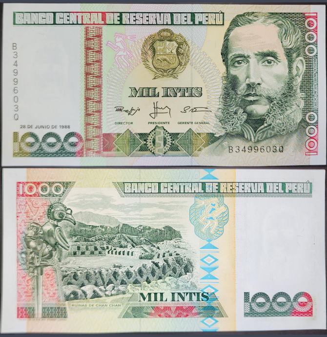 Novčanica: - PERU (1988) 1000 Intis UNC