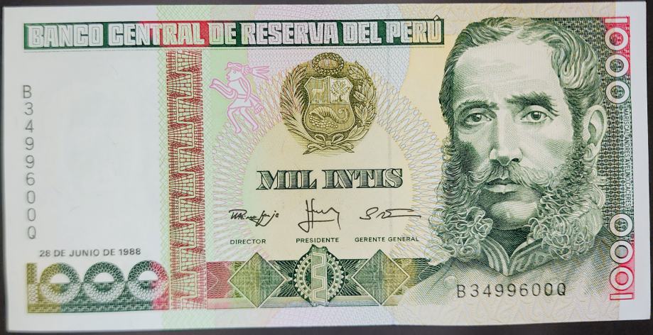Novčanica: - PERU (1988) 1000 Intis UNC