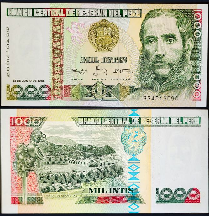 Novčanica: - PERU (1988) 1000 Intis UNC