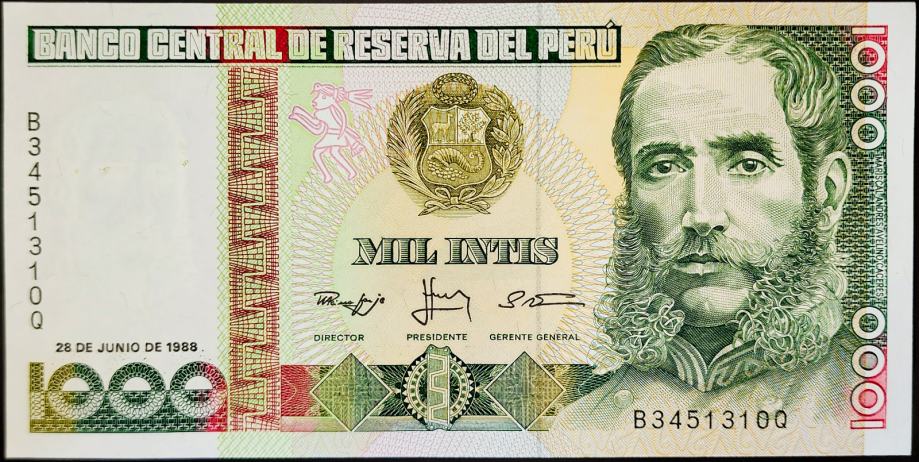 Novčanica: - PERU (1988) 1000 Intis UNC