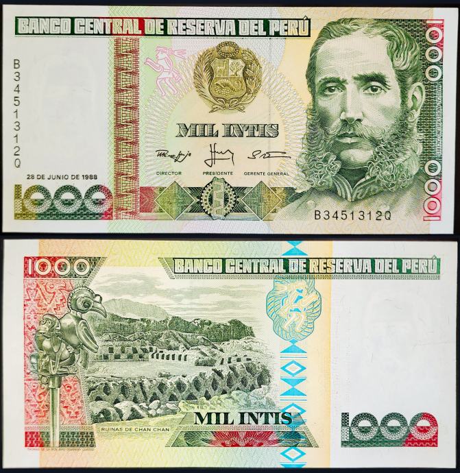 Novčanica: - PERU (1988) 1000 Intis UNC