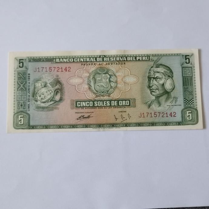 PERU 5 SOLES 1969 GODINA UNC