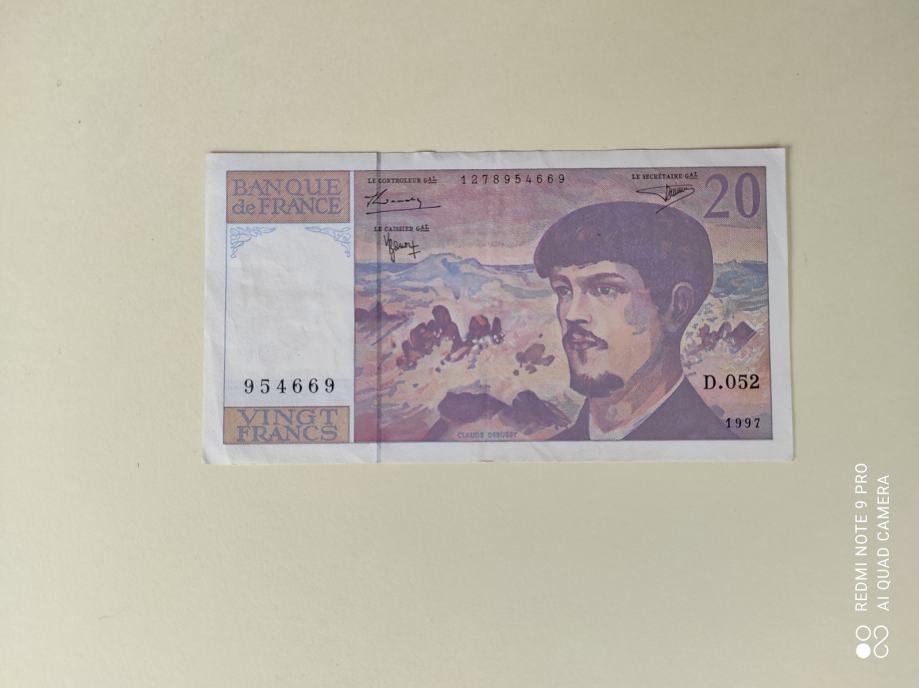 Na novčanici se nalazi francuski muzičar Claude Debussy (1862 –1918)