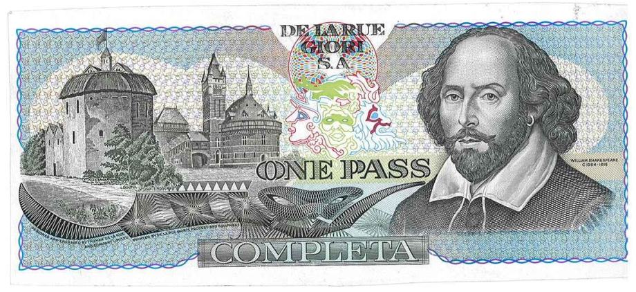 Oznake na novčanici: Echantillon, 1250, One pass, completa, De La Rue Giori