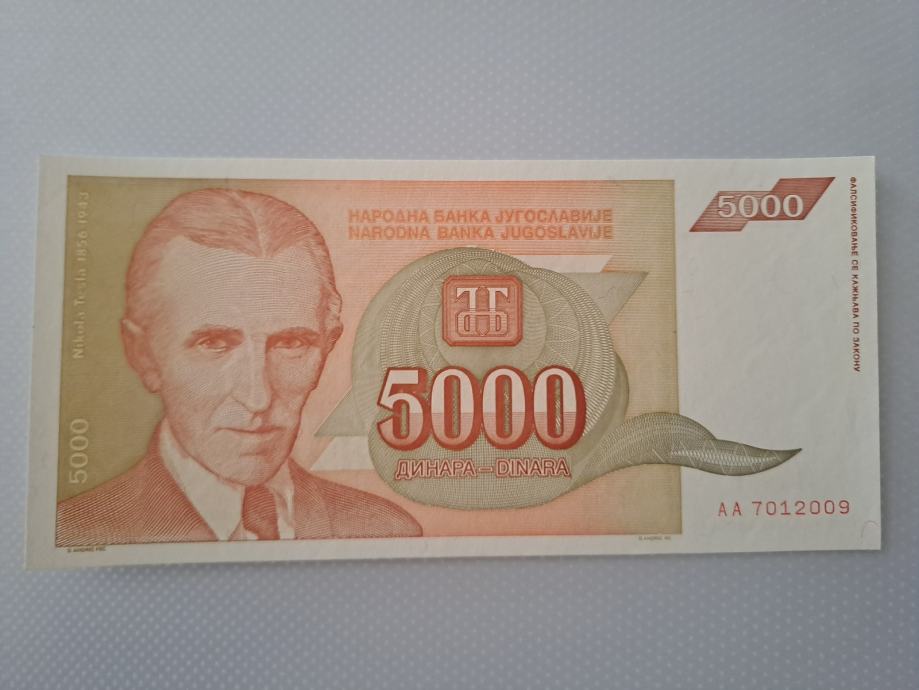 RASPRODAJA - JUGOSLAVIJA 5000 DIN AA serija UNC