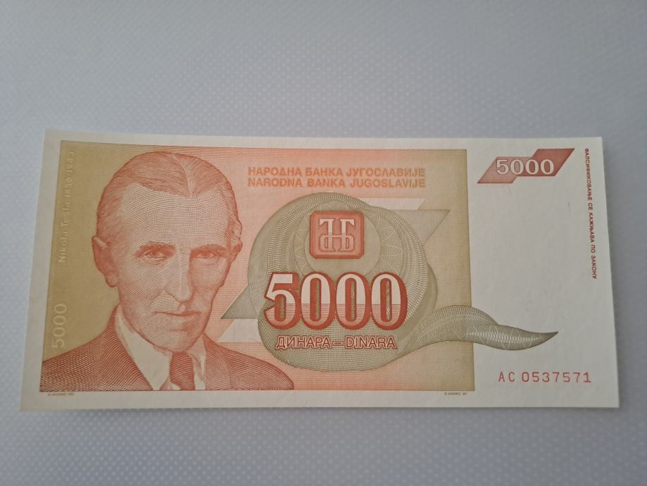 RASPRODAJA - JUGOSLAVIJA 5000 DIN AC serija UNC