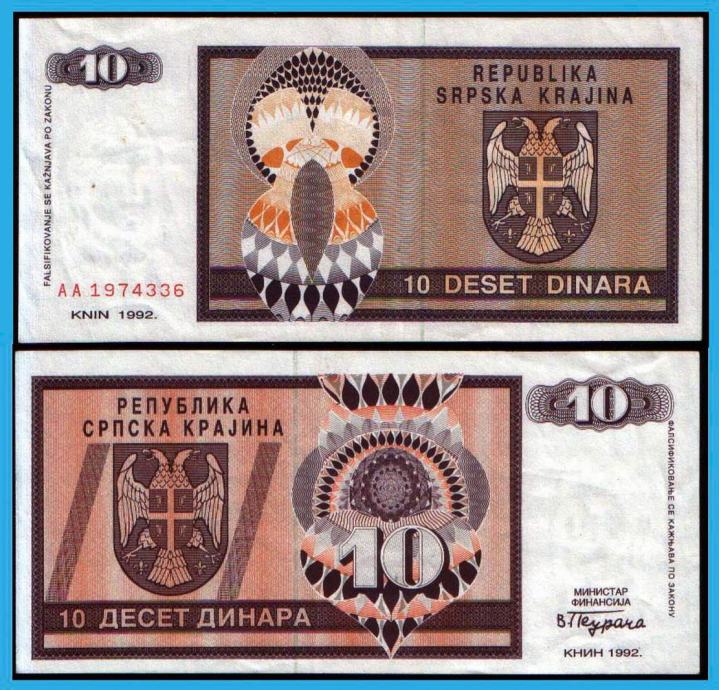 REPUBLIKA SRPSKA KRAJINA KNIN 10 DINARA 1992