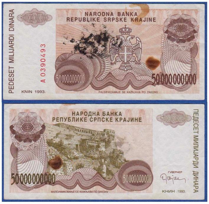 REPUBLIKA SRPSKA KRAJINA KNIN 50 000 000 000 DINARA 1993