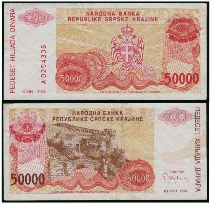REPUBLIKA SRPSKA KRAJINA KNIN 50 000 DINARA 1993 **
