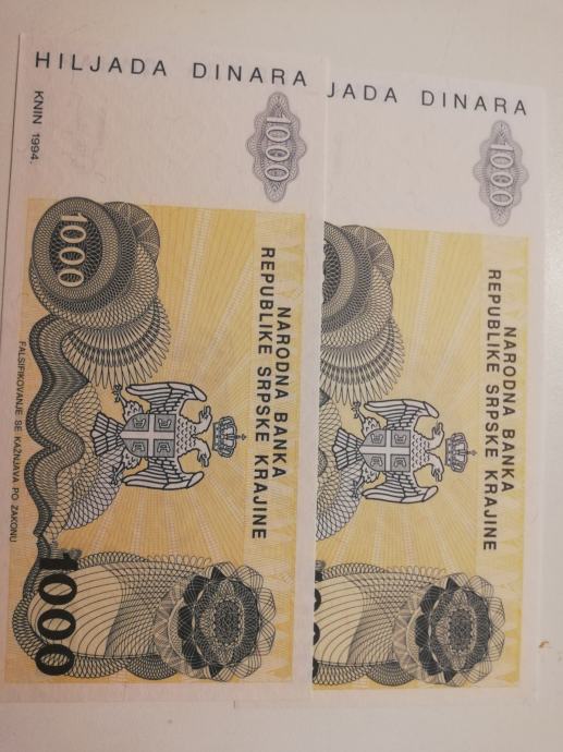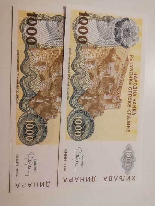 Republika Srpska Krajina (lot 2) 1.000 din (UNC) bez ser. broja "RRR"