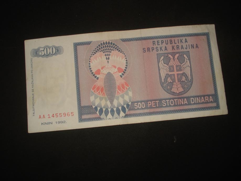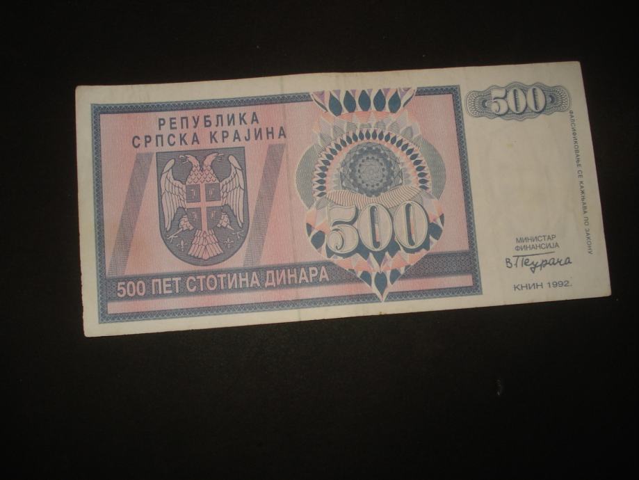 RSK Krajina Knin 500 dinara 1992.(rabljena)(1 kom)