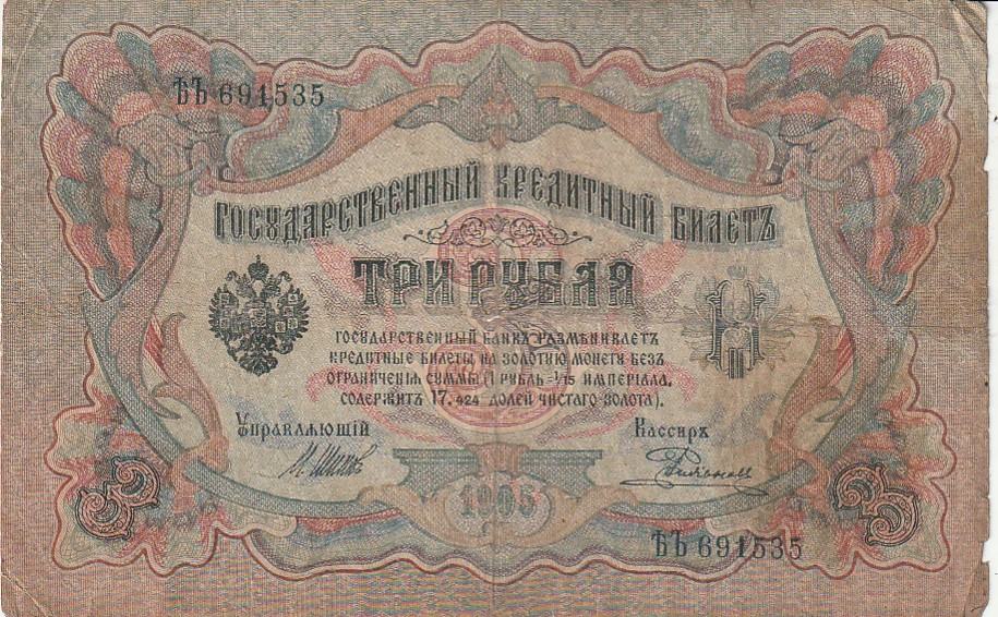 RUSIA 3 RUBLJA 1905