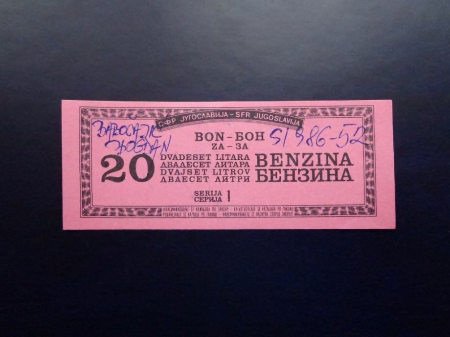 SAO Krajina - bon za gorivo 1993.g