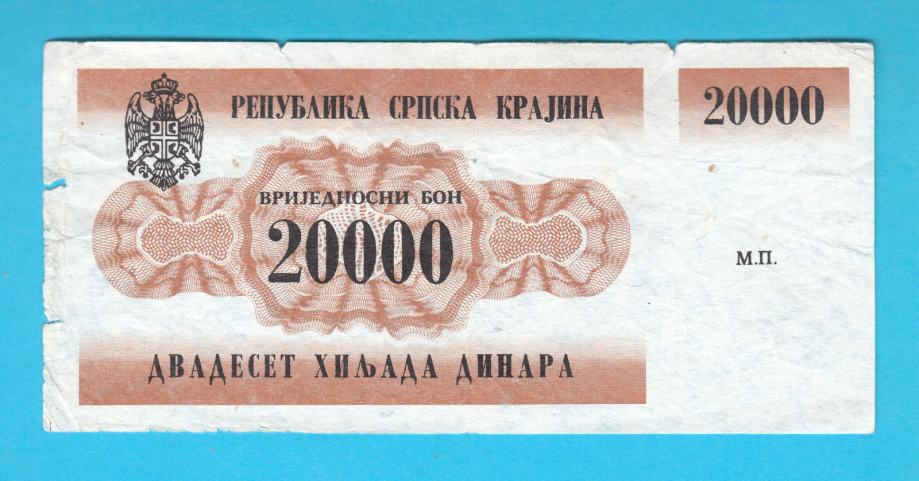SAO KRAJINA RSK KNIN (20.000 din) stara originalna novčanica iz 1991.