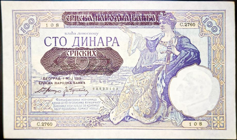 Novčanica: - SERBIA / SRBIJA (1941) 100 Dinara (Overprint Provisional Issue) UNC
