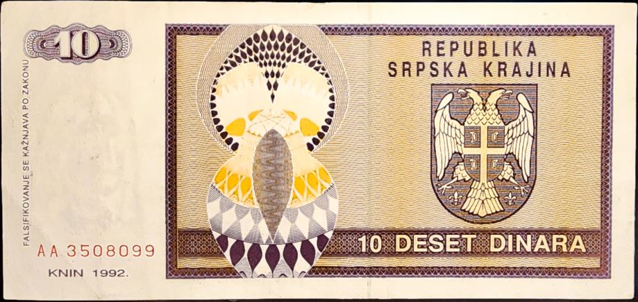 SERBIAN KRAJINA / SRPSKA KRAJINA (1992) 10 Dinara