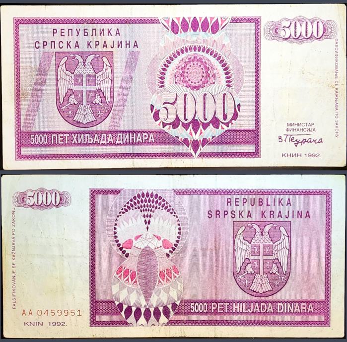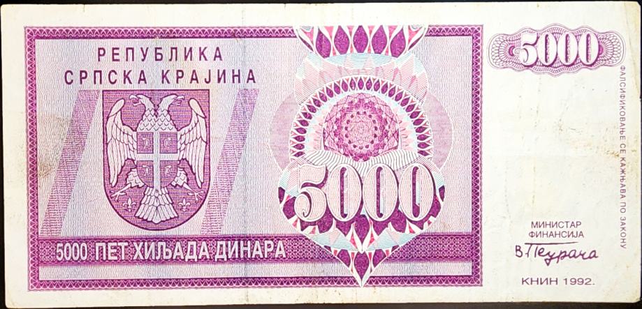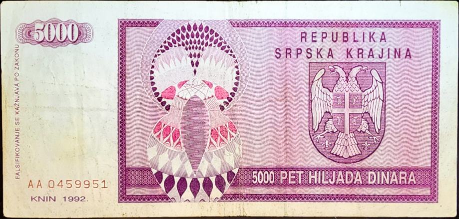 SERBIAN KRAJINA / SRPSKA KRAJINA (1992) 5000 Dinara
