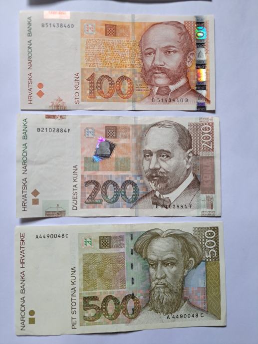 Prodajem set novčanica Hrvatskih kuna u apoenima od 5, 10,20,50,100,200,i 500 kuna, imam novčanica u raznim kvalitetama,cijena ovisi o stanju novcanice, naprimjer u srednjem stanju novcanice