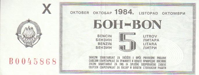 SFRJ BON ZA 5 L BENZIN GORIVA 1984 G LISTOPAD