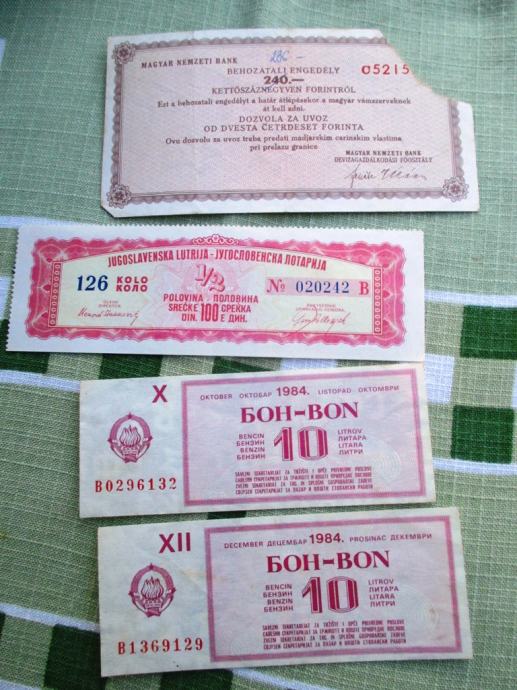 SFRJ - Bonovi za benzin i lutrija i dozvola za uvoz - lot