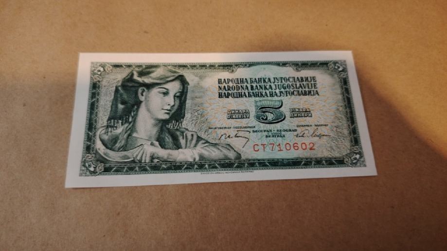 SFRY JUGOSLAVIJA 5 DINARA 1968 UNC / 2212 - OBIČNI BROJEVI